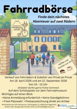 in der aktuellen Sonderausstellung 2026 geht es sprichwörtlich um den Rückenwind beim Radfahren: "Der Weg vom ersten Fahrrad mit Hilfsmotor zum E-Bike von heute" Das Rheinhessische Fahrradmuseum Gau-Algesheim lädt Sie zu rund 145 Jahren motorisierter Radfahrgeschichte ein. Erfahren Sie Amüsantes von den Anfängen der "Fahrräder mit Hilfsmotor", aber auch spannende technische Details zur Entwicklung vom elektrischen Dreirad im Jahr 1881 hin zum modernen Pedelec. Fakt ist: Fahrräder mit Rückenwind sind aus unserem Alltag nicht mehr wegzudenken: Ende 2023 wurden in Deutschland rund 15,7 Millionen E-Bikes gezählt, statistisch hat also jede fünfte Person bei uns im Land ein E-Bike.* Das Museumsteam freut sich deshalb, viele interessierte Gäste zu diesem aktuellen Thema begrüßen zu dürfen.